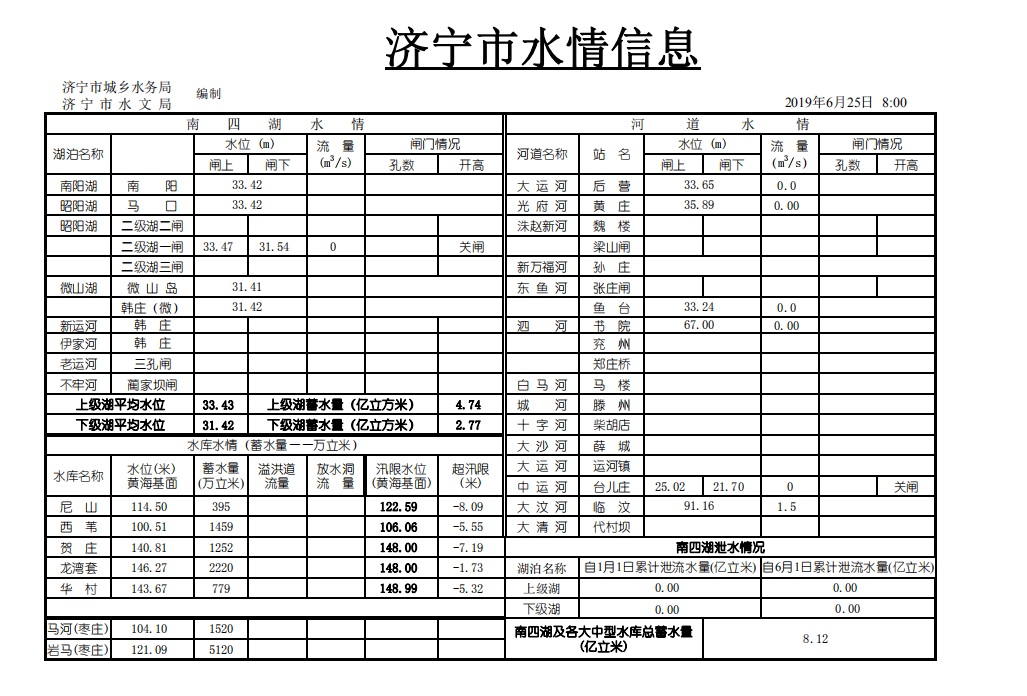 0625济宁市水情信息