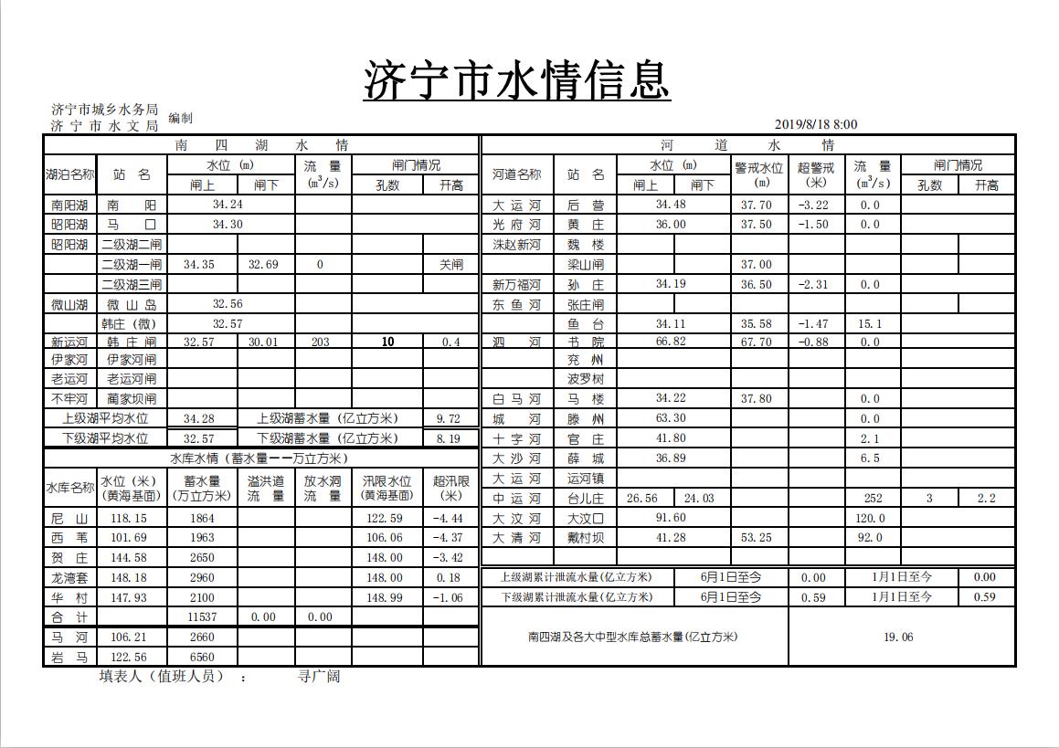 0818济宁市水情信息