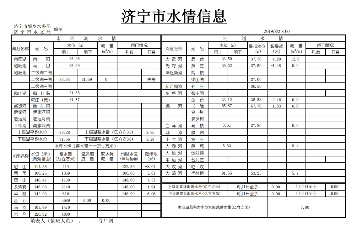 0802济宁市水情信息