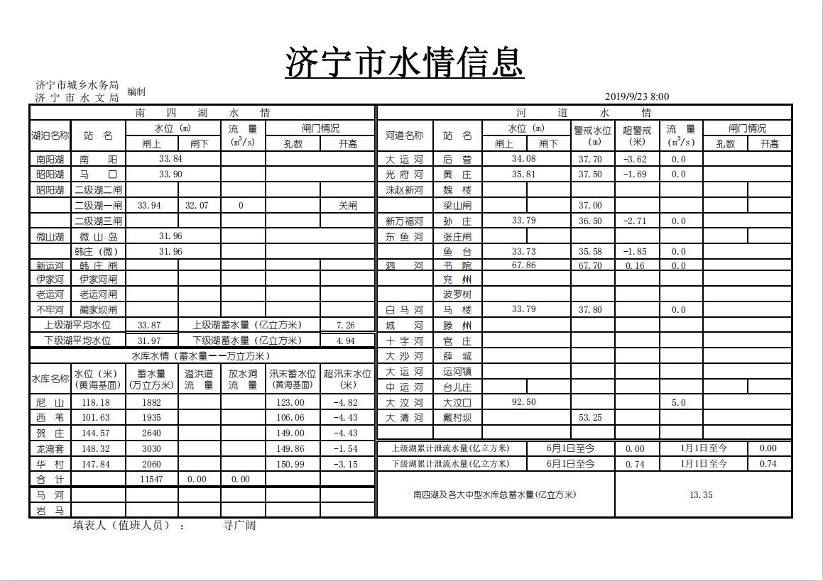 0923济宁市水情信息