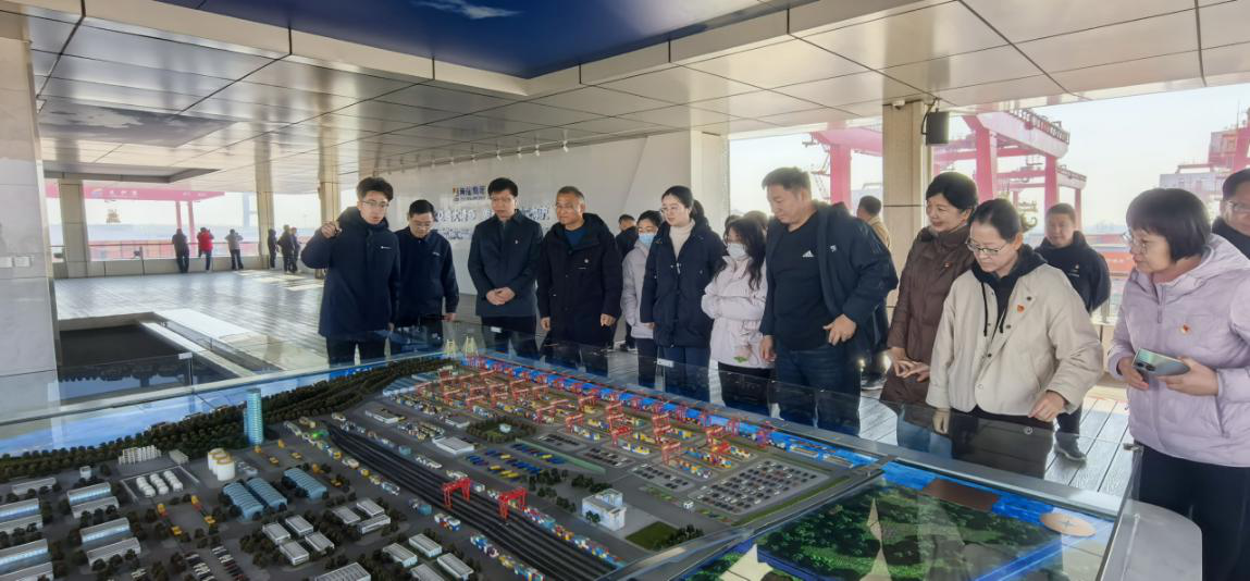 随后,全体人员又实地参观了“大运河上龙拱港”。察看了港口作业现场和指挥调度中心,同时,听取了龙拱港负责人关于港口规划、建设进度、功能布局以及未来发展前景的详细介绍。龙拱港这座被誉为“内河智慧港航标杆”的现代化港口,以“科技蓝”与“生态绿”交织的智慧图景,成为透视济宁“港产城融合”的窗口。在龙拱港自动化集装箱码头,全体人员被眼前的场景震撼,无人驾驶的5G集卡车如“钢铁甲虫”般穿梭,橙红色桥吊精准抓取集装箱“丝滑”装卸,AI智能理货系统实时比对货物信息,整个流程“零人工干预”。全体人员通过5G无人集卡、智能理货系统等“硬核科技”,见证千年大运河如何以“智慧+”重塑“黄金水道”。