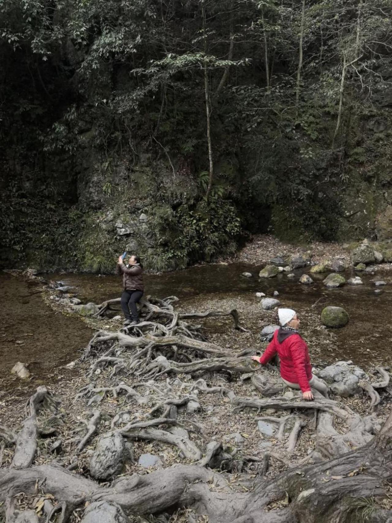 水来到神农溪,不经意停下来,这里海拔 400 米左右,比其主峰1376 米要低得多,山里的水不遗余力向这里汇集,各类植物的种子 也汇集到这里,一有机会便生根发芽;即便是冬季,这里温度也在 15 度以上,即时湿度 83.7%,轻轻待上一会,眼都像是洗过的,当地人说, 这里负氧离子瞬间可以达到 2.7 万个,是个天然的氧吧。 溪边一棵银杏靠岸一枝,如大腿粗伸向河面,靠水的底面,像母猪奶娃,齐整整向下长出一排根,用不了多久,就能长进河床里去,如果是高山榕到不稀奇,可这是北方树啊;真如托斯泰所言:这是一片肥沃的土地,如果种上一根车杆,就能长出一辆大车来。可能,就说的这里吧。靠在岸边,闭上眼睛,像是开了天目,一股清流在身体里蔓延,眼前的景,如三 D 打印般在脑海里曾现,甚至连味道也在上颌窦里窜。真正的香,只可意会,不可言传;书有未曾经我读,事无不可对人言。