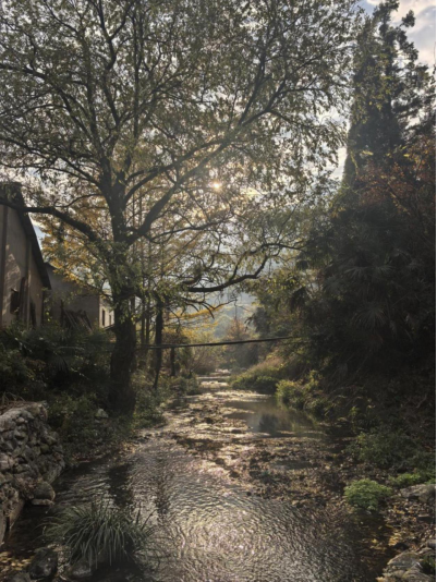 走在乡间,一弯弯稻田从河边向山上码放,错落有致,要是从高处向下看,要是在夏秋,应该更有韵味,稻田在山之阳,茶园在山之阴,稻田干了,茶园依旧油绿;这里富硒大米实在好吃,米香镶嵌在炊烟里,凝固在岁月中,甚至不到做饭时辰,也能闻见;畦流淙淙,从山腰向河边汇集,就像生产队开会,从各户人家向大队场院里集合;畦流由斗、农、毛组成:斗畦上下,农畦东西,毛畦通到各家田块,灌满稻田轻轻一拢,又返回更低处的斗畦,汇入河中。一条步道沿着河岸,从这村蜿蜒到哪村,麻绳般把各村串联起来,这是从前的路,也是最老的路,用步丈量时间长了,小路认识了各村的人们,谁的步履重,谁的步伐大,谁的步子轻,甚至谁喜欢在路边那个固定地方撒泡尿,它也记得,它看惯了路边发生故事,送走了一茬又一茬的人;我第一次走,有些怯,怕它笑话,一步三回头,东傻西望,一看就是个外乡人,怯怯走到村头,想起了老鼠过街:一看,二慢,三通过;我们做事,是不是也该像老鼠那样?!