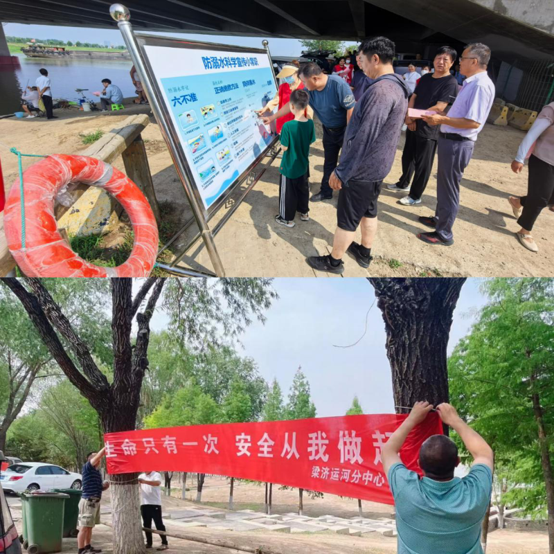 活动中,大家兵分多路开展防溺水工作,一是按照《全市预防未成年学生溺水工作落实情况督查报告》对梁济运河重点堤段开展隐患排查和整改,检查安全警示标志和措施是否完整到位;二是加大日常巡查力度,对在河道沿线水域垂钓、游泳、戏水等的未成年学生及时劝离,不断增强群众和未成年学生安全避险的意识和能力;三是在沿河人群聚集的堤段和沿河村庄设立防溺水展板和宣传条幅,发放防溺水宣传页,讲解自救互救知识;四是开展了防溺水救生演练。