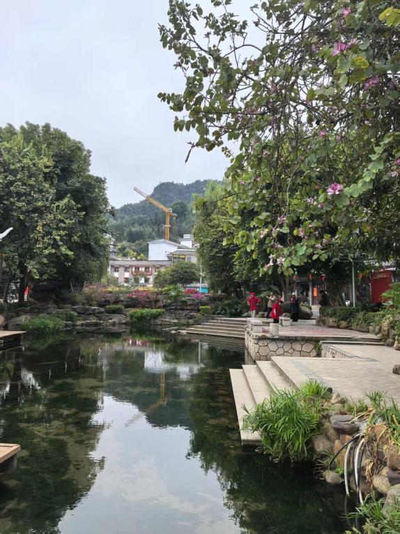 来到县城里,小溪安静下来,它也成了县城的一部分。这里的确热闹,岸边色彩斑斓,广场上瑶歌声声。一条河,两条路,一个广场,几座种满楼房的山包,就是这座城。