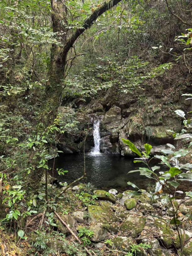 在一个跌水处,小溪缓了下来,它从高坡滑下来,真担心把它给摔疼了,好在,小溪不怕摔,在半空中它依然洋溢、质朴。溪流抚摸着不紧不慢的鱼,石块揉搓着缓缓流淌的水,灌木林油绿葱笼。