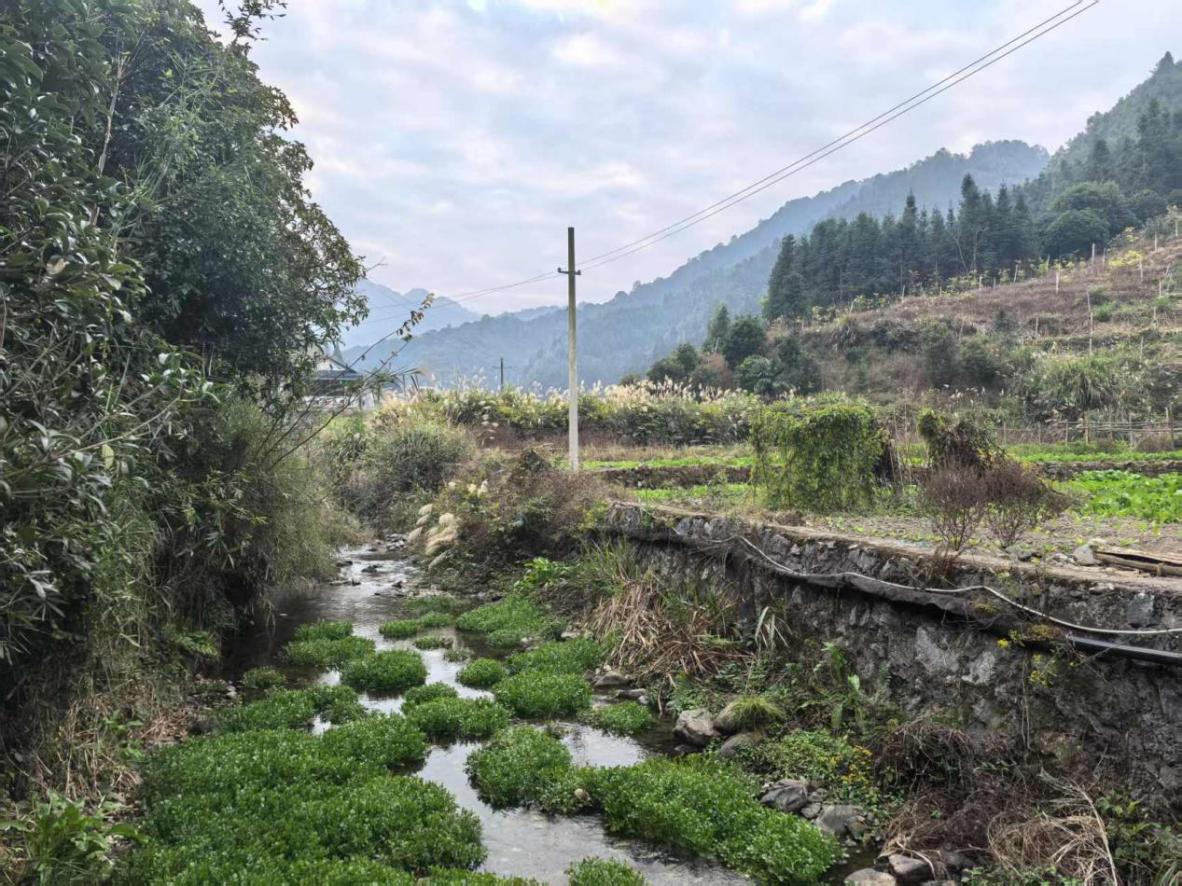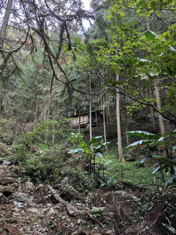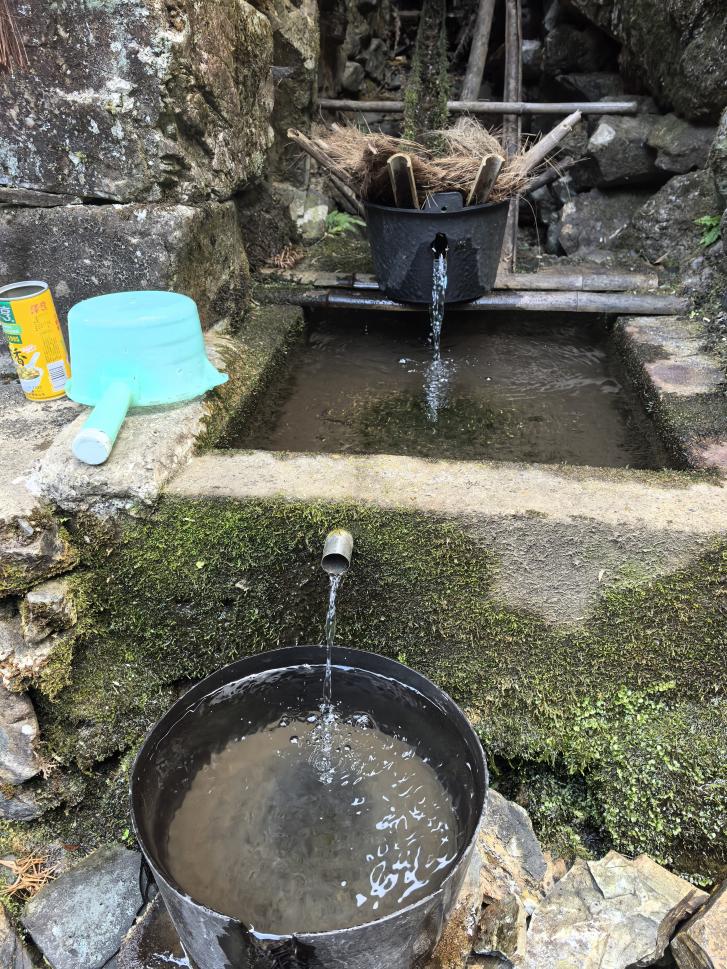 是的,这就是小溪的源头。这里有五户放山的人家,一户门锁都生了锈,大概很久没有人来过了,其余人家门口都有一个大水缸,有水流通过半拉竹渠流进,主管从高处又分流进各家,再从水缸流回小溪。